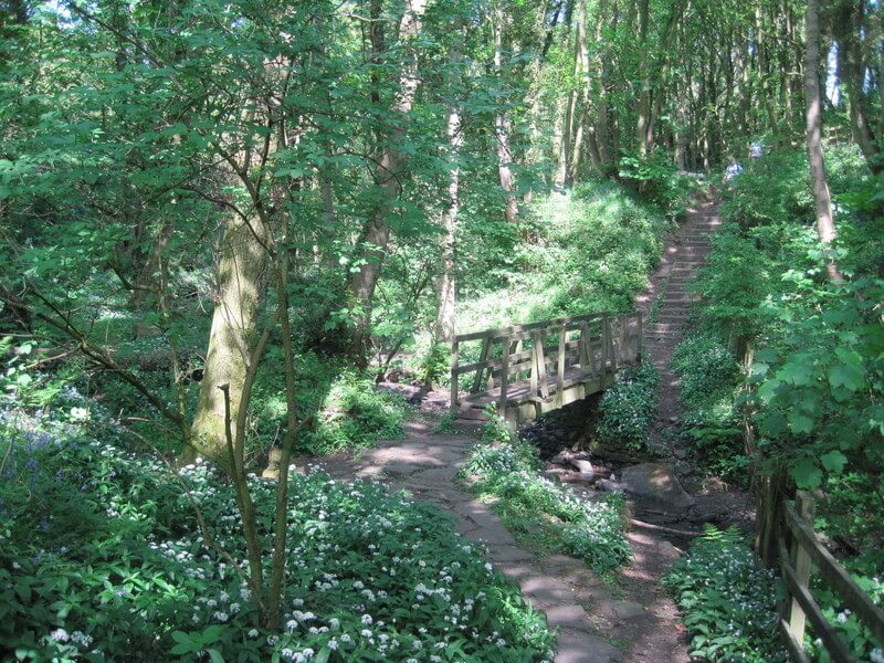 Fairy Glen is a narrow wooded valley carved by Dean Brook, offering a short but atmospheric circular route. The path follows the stream through dense woodland with small waterfalls and stepping stones.