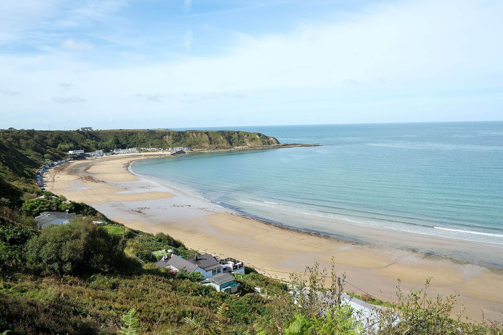 Llanbedrog is a sheltered sandy beach with colourful huts and a relaxed feel, and it works well if you want an easy beach day with extra options nearby. The headland walk to the Tin Man sculpture is a great add-on if you want more than just sand underfoot.