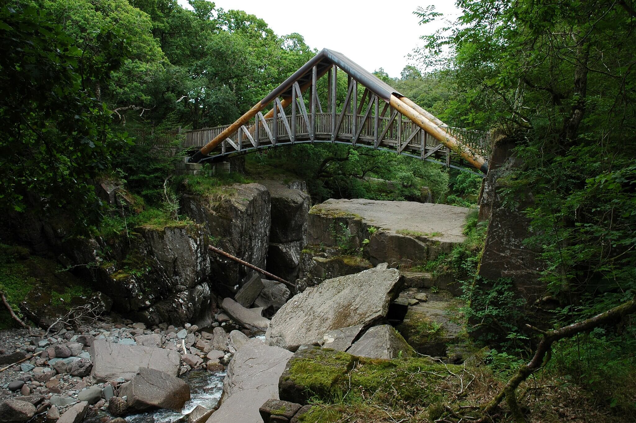 A scenic woodland trail leading to dramatic waterfalls and a bridge viewpoint. A short and satisfying walk for dogs.