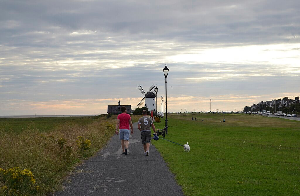 Lytham Beach offers a calm stretch of coastline backed by a long promenade and open green spaces. At low tide, the sands retreat far from the sea, creating a wide and peaceful walking environment that suits steady coastal walks with a dog.