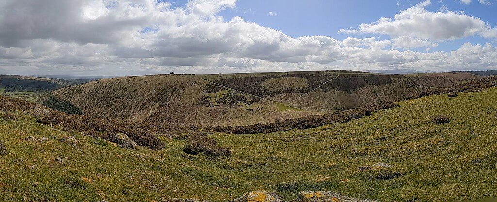 The Gospel Pass is the highest road in Wales, and the open moorland either side of it stretches into Herefordshire along the Black Mountains ridge. The walk from the Hay Bluff car park takes in the summit plateau and the long ridge south toward Lord Hereford’s Knob, covering around 9.2 km (5.7 miles) of unfenced upland. The views from the ridge extend across the Wye Valley, the Brecon Beacons to the south, and on clear days as far as the Shropshire hills. This is genuinely wild walking — no gates, no stiles, just open common land with cropped bilberry and wind-bent grass underfoot.