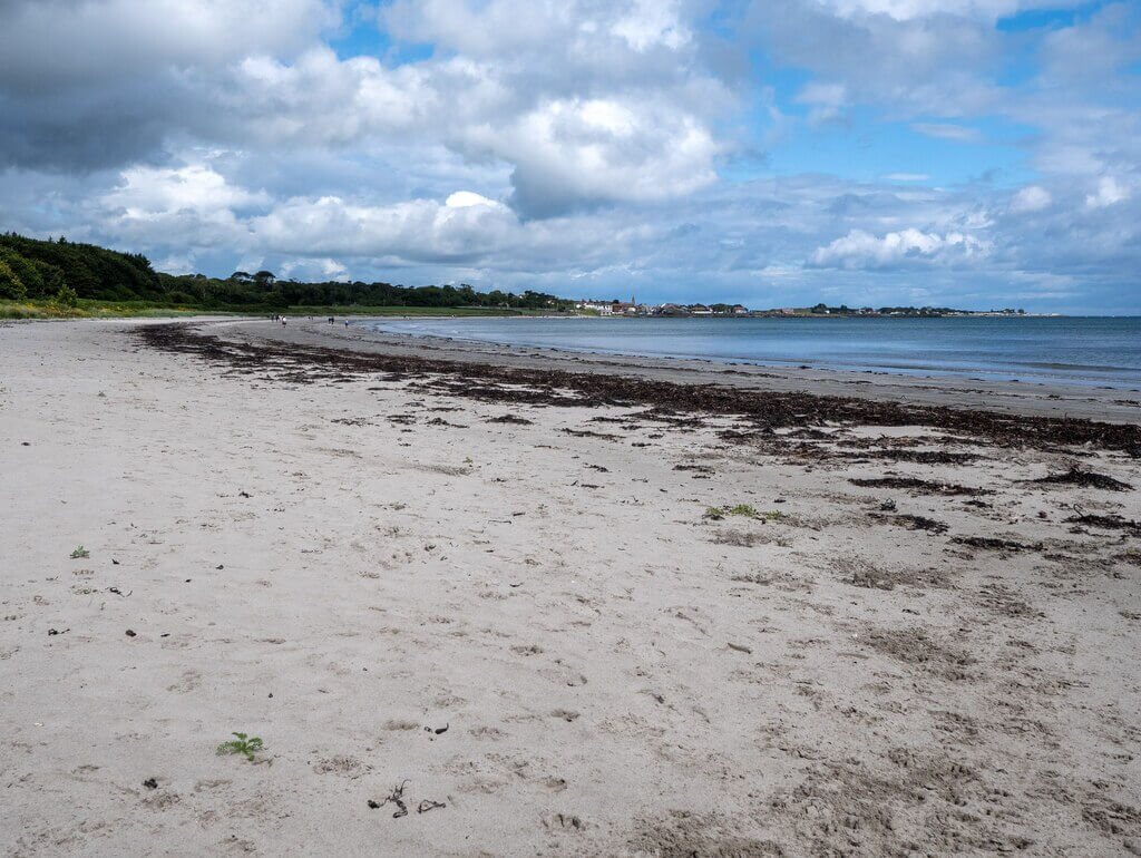 Ballywalter Beach extends south of Ballywalter village for approximately three kilometres, a sandy shoreline backed mostly by fields and farmland. The setting feels rural and undeveloped, making it ideal for walkers seeking space without crowds.